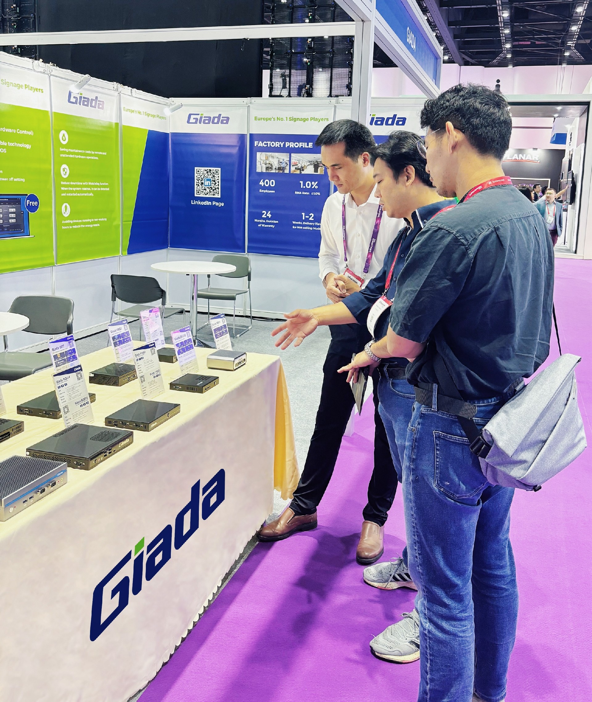 除此之外,Giada三亿科技展示一系列数字标牌播放器、户外嵌入式整机、OPS/SDM及嵌入式主板等明星产品,并带来一系列量身定制的解决方案,以满足东南亚地区的具体需求。