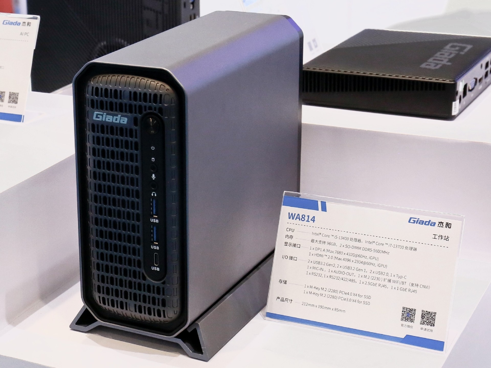 2024年第三季度,三亿科技自研AI PC N601亮相,AI一体机主板CB4-411推出,第四季度三亿科技又在高交会现场展示最新产品——迷你工作站WA814,它支持全天候24小时工作,体积仅为3.46L,在空间狭小的场景也能稳定运行!拥有更好的GPU性能,支持NVIDIA的Quadro系列专业显卡,如T400和T1000,为需要进行CAD、DCC(数字内容创作)和其他高负荷图形应用设计的用户提供了更可靠的方案。